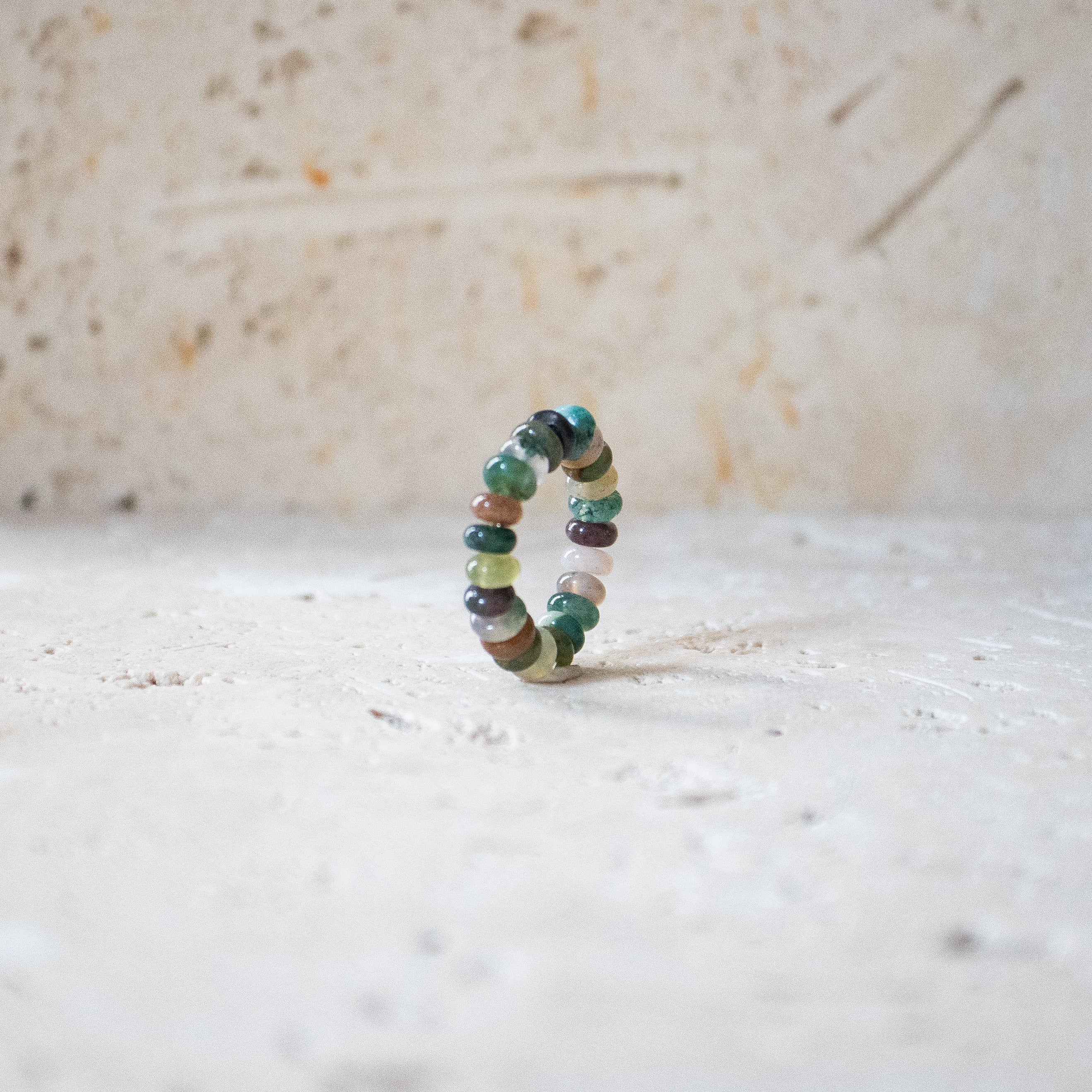 Regenbogen-Ring – Handgefertigter Ring aus grünem Indischem Achat auf Gummiband - Nooe UGRegenbogen-Ring – Handgefertigter Ring aus grünem Indischem Achat auf Gummiband - Nooe UG
