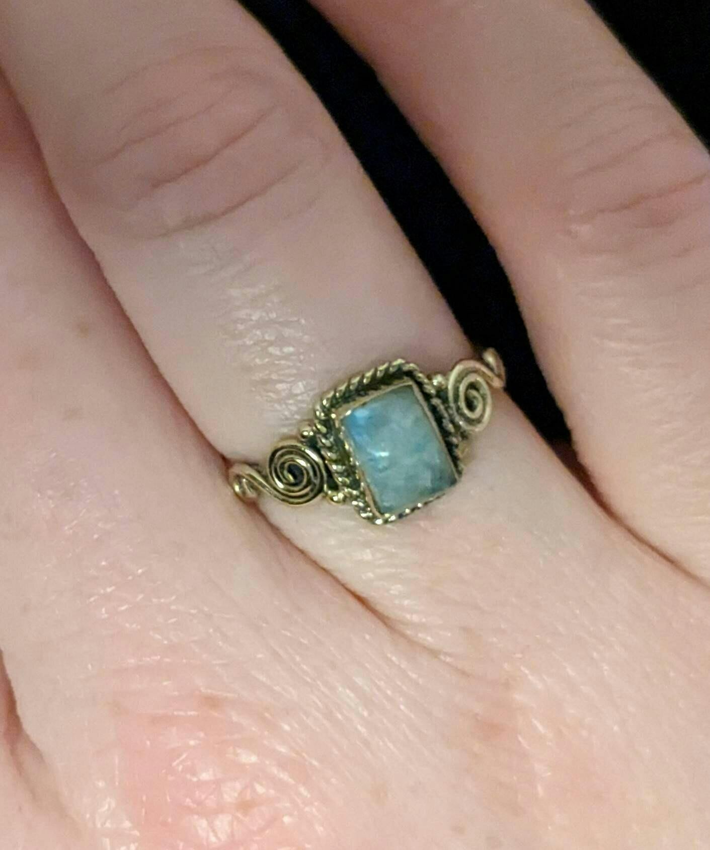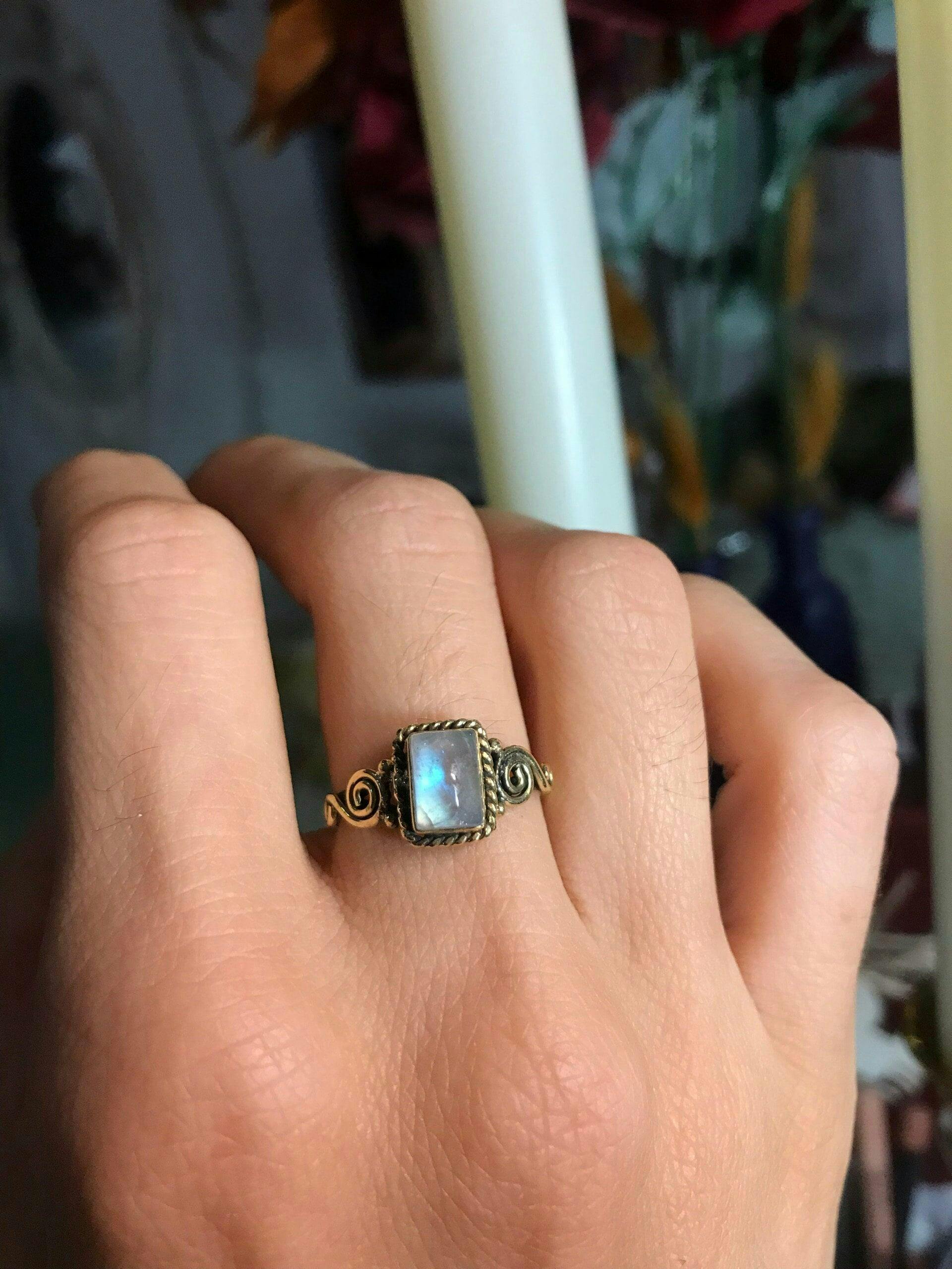 Rechteckiger Mondstein-Ring – Verspielt & Handgefertigt aus Messing Angebot€29,00